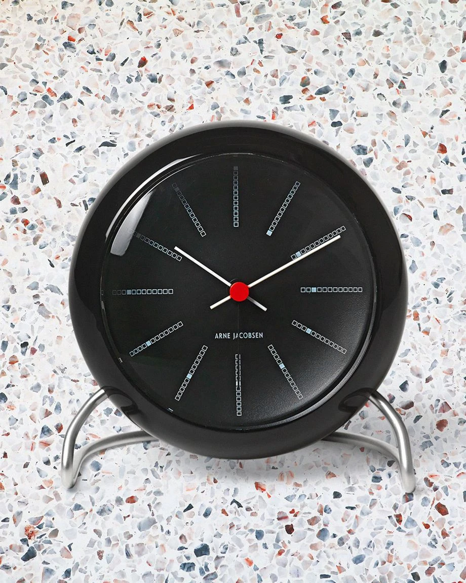 The table clock was created by the world-famous architect in 1939. The graphic appearance and the metal base, which was inspired by the Arne Jacobsen chairs “Myren” and “Syveren”, makes the clock a great gift idea for design lovers. The clock fits into any modern home.