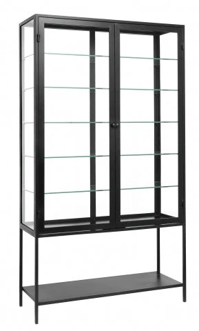 The cabinet has an open shelf at the bottom and glass sides all over.