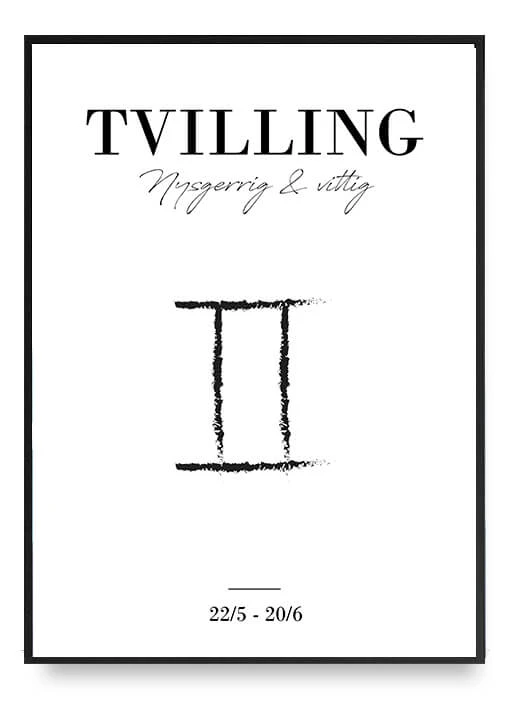Posters with a personal twist are perfect for putting your own touch on the decor. Here you get a simple and modern zodiac sign with the star sign Gemini. The black and white poster is minimalist in its expression, allowing it to fit in any wall or room in the home. Zodiac signs are unique, they can determine one’s personality and be the reflection of one’s way of being and thinking.